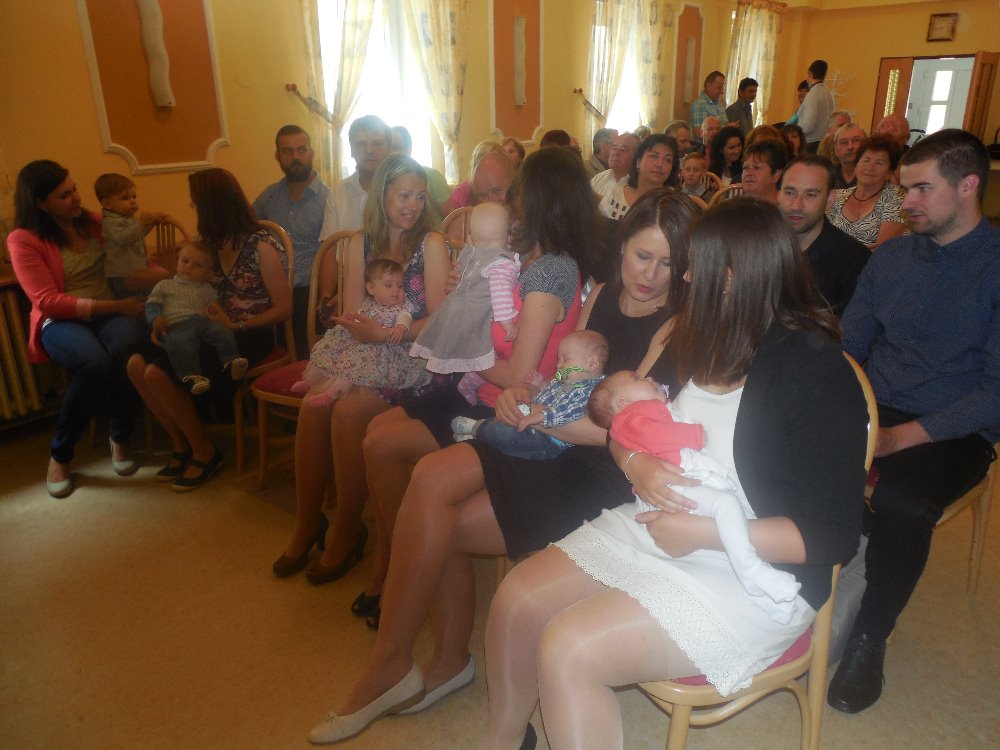 Po dětech byly starostce obce představeny všechny děti a ona se ujala slova. Svůj hezký proslov ukončila větou, vítám Vás, Karle, Lukáši, Ondřeji, Tomáši, Marie a Alice mezi nás spoluobčany obce Skalička. Po starostce následovalo postupné zapsání do pamětní knihy a předáni kytiček a dárků. Obřad byl ukončen společným přípitkem za doprovodu živé hudby. Nikdo však domů nepospíchal a využil možnosti focení dětí v malebné kolébce a rovněž focení celé zúčastněné rodiny pro celoživotní památku.